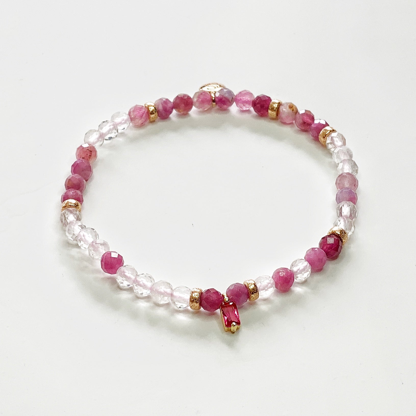- Tourmaline rose, quartz clair, 4 mm