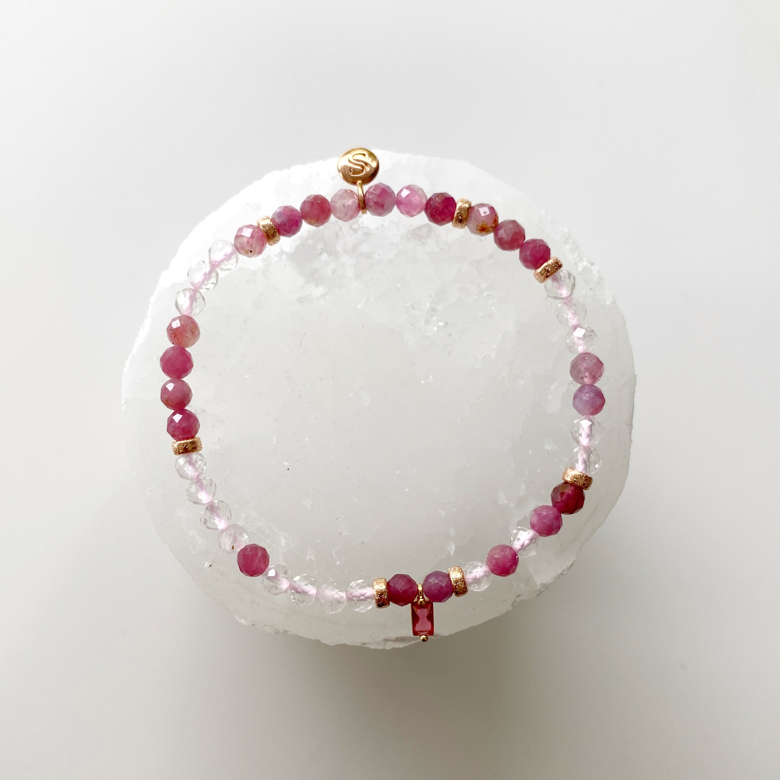 Lâchez prise et faites confiance à l'univers pour vous apporter amour et protection avec cette belle combinaison de tourmaline rose et de quartz clair.
