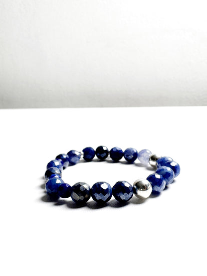 Handcrafted with faceted blue Moonstone and Lapis Lazuli, accented by sterling silver. This bracelet combines deep, celestial blues with a touch of shimmer—perfect for adding elegance to any outfit.