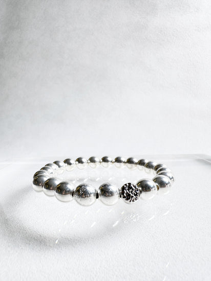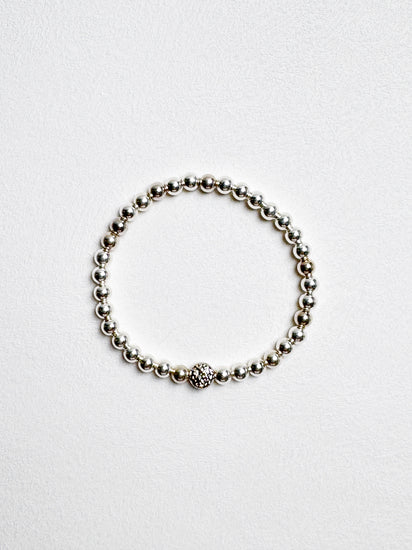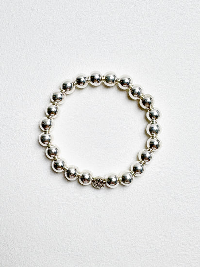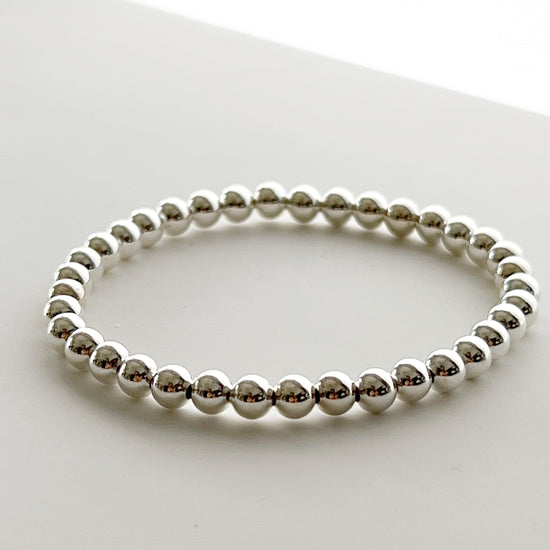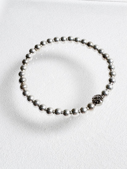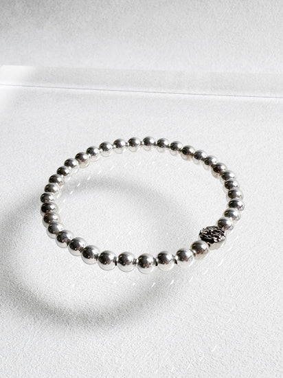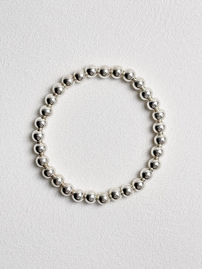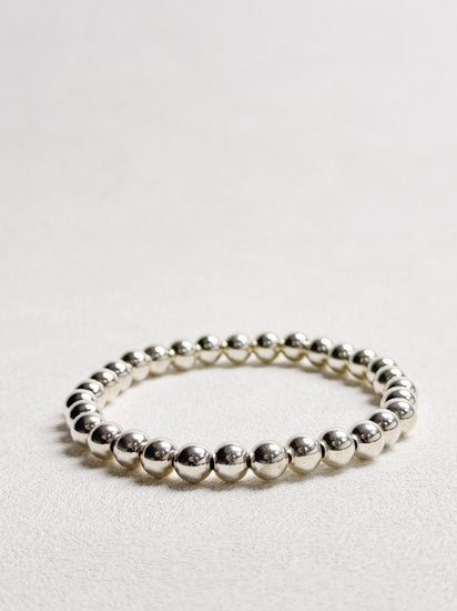 This lightweight, sterling silver beads strung on durable stretchy cord adds luxe shine to your daily look or makes perfect companion for a stack of bracelets.