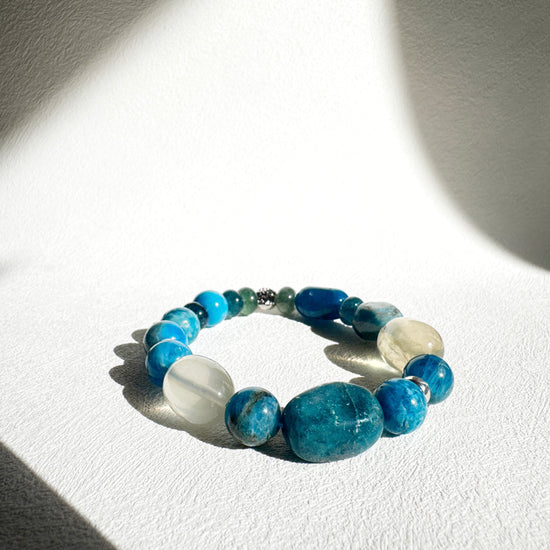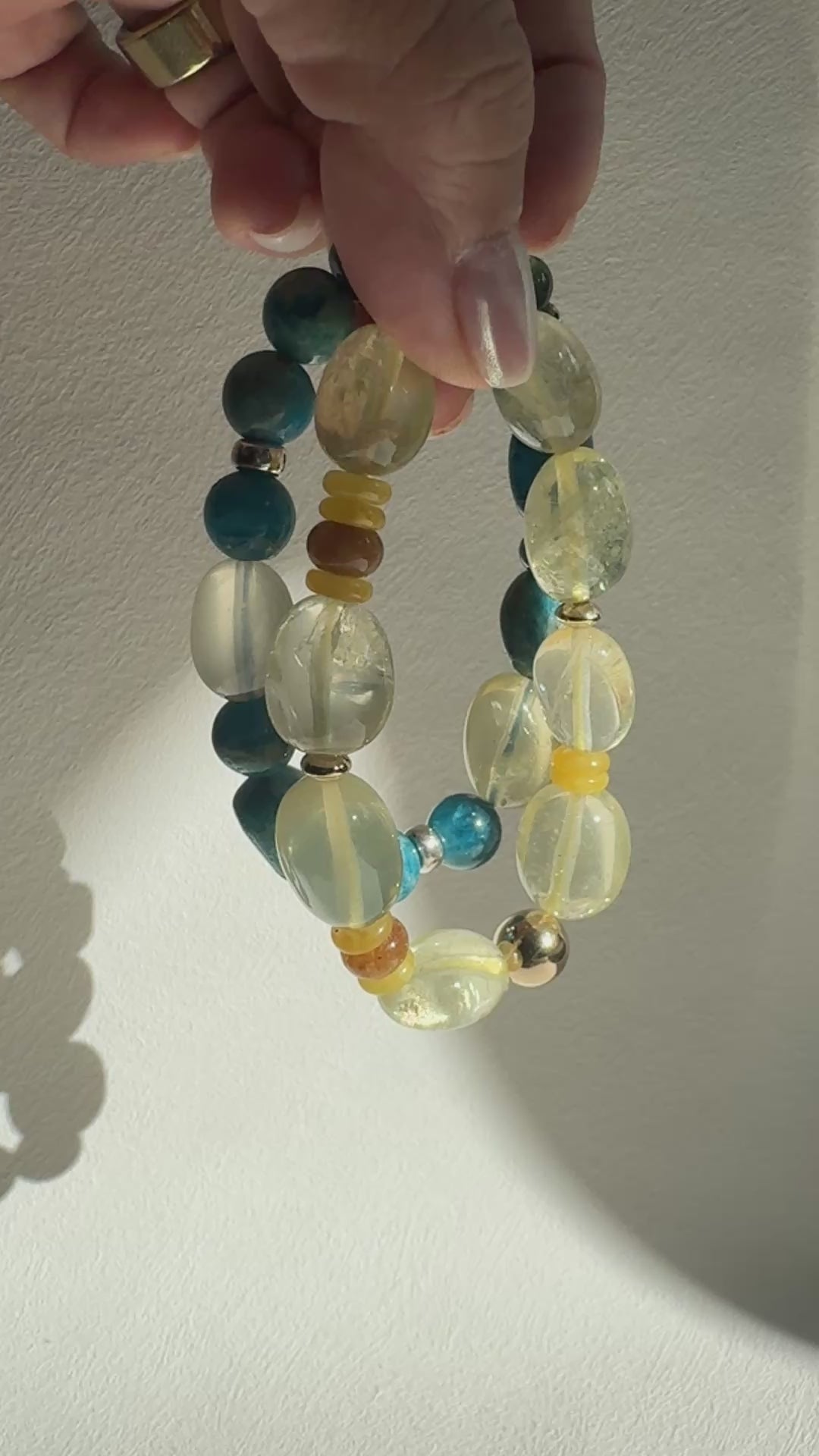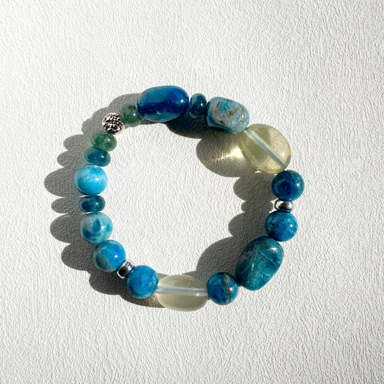 Radiate positivity with this captivating bracelet featuring Apatite and Lemon Quartz, beautifully complemented by Sterling Silver elements. Designed to inspire clarity, joy, and emotional balance, this piece serves as a daily companion for those seeking focus, acceptance, and harmonious communication.