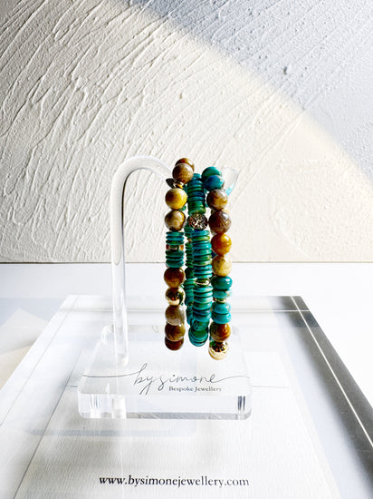 This elegant bracelet showcases the vibrant hue of Turquoise complemented by gold-filled accents. A timeless piece that exudes natural beauty and sophitication, perfect for adding a touch of colour to any outfit.